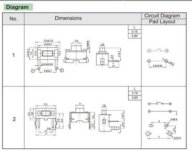 3×6 Light touch switch, light touch buttons, patch type light touch switch, pin type light touch switch, miniature light touch switch,