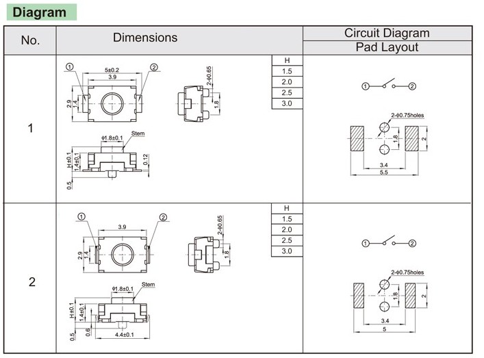 3×4×2 Light touch switch,light touch buttons, patch type light touch switch,pin type light touch switch,miniature light touch switch,