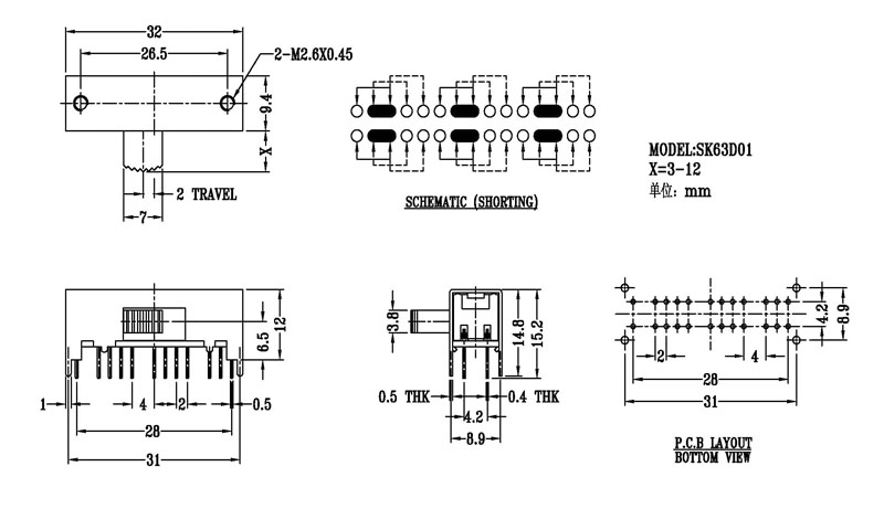 使用功率/額定值Rating:DC 50V 0.3A~1A 觸點(diǎn)電阻/Contact Resistance:< 100 mΩ 絕緣電阻/Insulation Resistance:≥ 100 MΩ 耐壓/Withstand Voltage:500V AC for 1 minute 使用壽命/Life cycles:10000次 操作溫度/Operationg Temperature:-16℃to+60℃ 儲(chǔ)存溫度/Storage Temperature:-40℃to+85℃ 符合標(biāo)準(zhǔn)/Complies with:RoHs&Reach