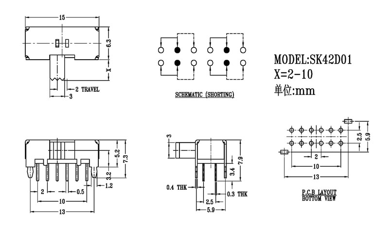 使用功率/額定值Rating:DC 50V 0.3A~1A 觸點電阻/Contact Resistance:< 100 mΩ 絕緣電阻/Insulation Resistance:≥ 100 MΩ 耐壓/Withstand Voltage:500V AC for 1 minute 使用壽命/Life cycles:10000次 操作溫度/Operationg Temperature:-16℃to+60℃ 儲存溫度/Storage Temperature:-40℃to+85℃ 符合標(biāo)準(zhǔn)/Complies with:RoHs&Reach