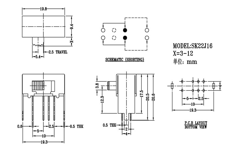 使用功率/額定值Rating:DC 50V 0.3A~1A 觸點(diǎn)電阻/Contact Resistance:< 100 mΩ 絕緣電阻/Insulation Resistance:≥ 100 MΩ 耐壓/Withstand Voltage:500V AC for 1 minute 使用壽命/Life cycles:10000次 操作溫度/Operationg Temperature:-16℃to+60℃ 儲(chǔ)存溫度/Storage Temperature:-40℃to+85℃ 符合標(biāo)準(zhǔn)/Complies with:RoHs&Reach