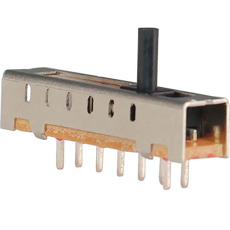 Slide Switch Main data Rating:DC 50V 0.3A~1A ContactResistance:< 100 mΩ InsulationResistance:≥ 100 MΩ Withstand Voltage:500V AC for 1 minute Operating Force:180~500gf Life cycles:10000次 Operationg Temperature:-16℃to+60℃ Storage Temperature:-40℃to+85℃ Complies with:RoHs&Reach