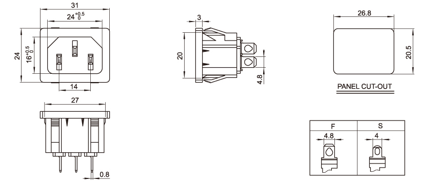 Model number: DB-14-2F : Key words: the end socket of the product, the end power socket, the pin socket, AC power socket and socket. Directions: small home appliance character power supply;Main engine box socket;Power socket of the battery car;Electrical socket 31*24 feet inches: Current voltage: 10a 250V.