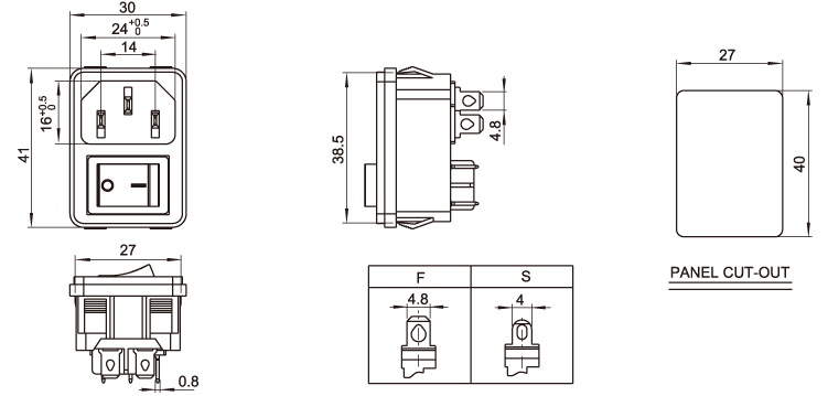 Standard: IEC 60320 C14 Rating:15A 250V AC / 10A 250V AC Insulation Resistance: 100MΩ 500V DC/1 minute Dielectric Strength: 2000V AC/1 minute Housing Material: Thermoplastic 94V-2~V-0