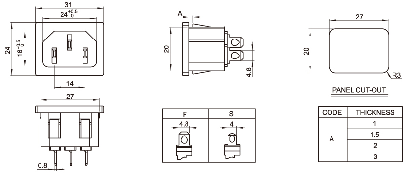 Model number: DB-14-5F: Key words: the end socket of the product, the end power socket, the pin socket, AC power socket and socket. Directions: small home appliance character power supply;Main engine box socket;Power socket of the battery car;Electrical socket 31*24 feet inches: Current voltage: 10a 250V.