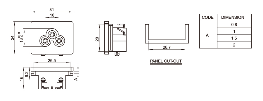 Type no. : DB - 6-5 s2s8 Key words: plum socket: plum socket;Adapter power socket Power adapter: laptop power supply;Medical device power supply;The charger. Or: 31 * 24 Current voltage: 10a 250V