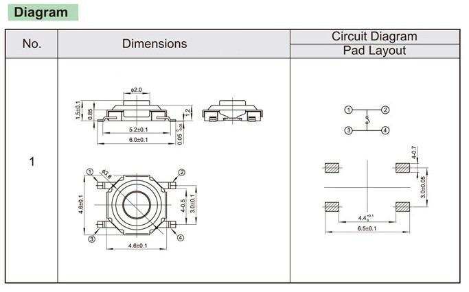 5.2×6.4 Light touch switch, light touch buttons, patch type light touch switch, pin type light touch switch, miniature light touch switch