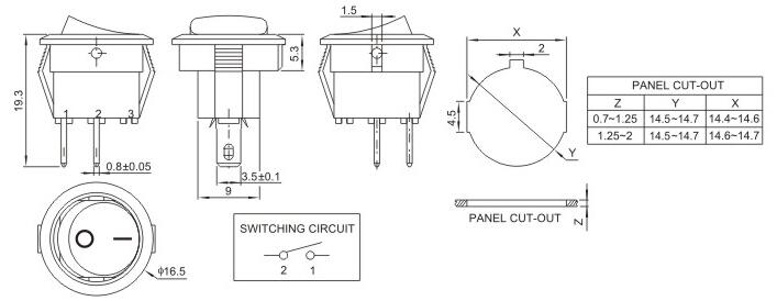 Circular diameter 16 Ship type switch Rocker switch IO power switch