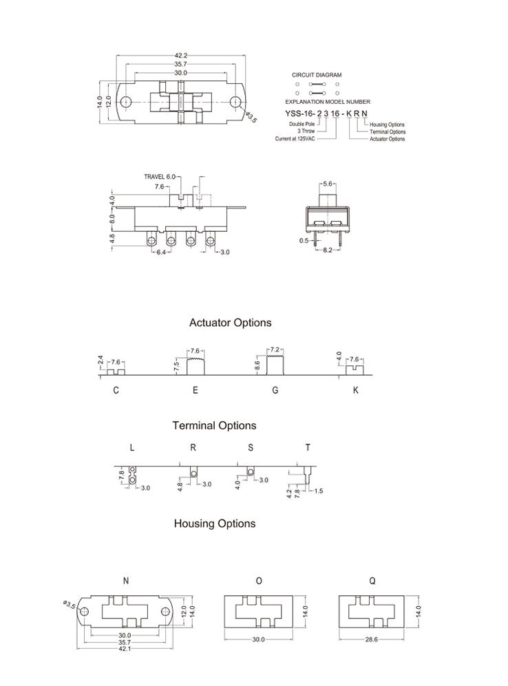 工作溫度范圍Operating temperature range:-30℃ to+85℃   額定電流Rating:3A 250V AC   絕緣電阻Insulation resistance: 100MΩ min.500V DC 接觸電阻Contact resistance: 30m Ω max.   操作力度Operating fore:250±100gf   壽命Life time:10000 cycles(依產(chǎn)品而定)