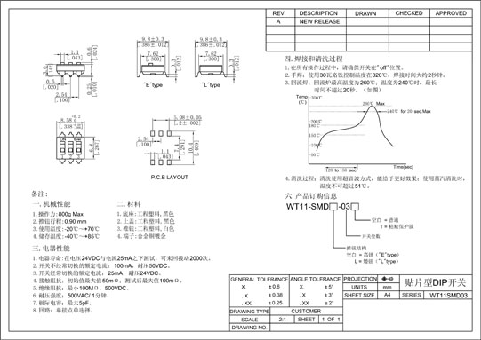 Electrical Ratings:Switch: 25mA @ 24VDC Carry: 100mA @ 24VDC Electrical Life:2,000 cycles typical Contact Resistance:< 25 mΩ initial Actuation Force:400 gF max Actuator Travel:2.0 mm Dielectric Strength:500Vrms min Insulation Resistance:> 100MΩ min Operating Temperature Storage Temperature:-40°C to 85°C -40°C to 85°C