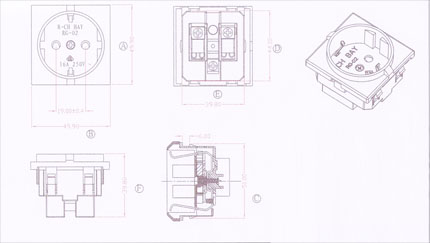 Rating:16A 250V AC Insulation Resistance: 100MΩ 500V DC/1 minute Dielectric Strength: 2000V AC/1 minute Housing Material: Thermoplastic 94V-2~V-0 Pancel Cut-out: 45X45mm