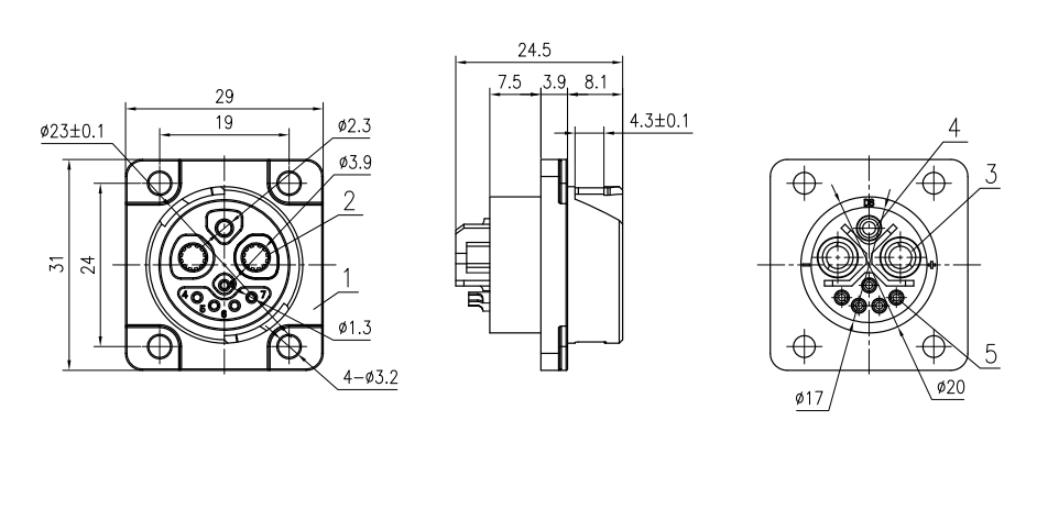 壽命:3000次 / 使用溫度:-20℃~80℃ / 型號(hào):M23方形母座2+1+5 / 黑色