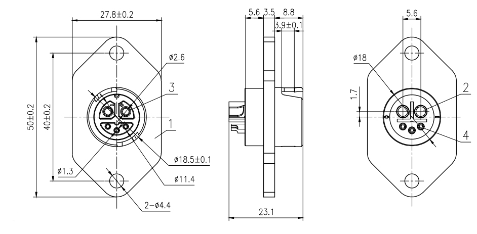 壽命:3000次 / 使用溫度:-20℃~80℃ / 型號:M19菱形母座2+3 / 黑色