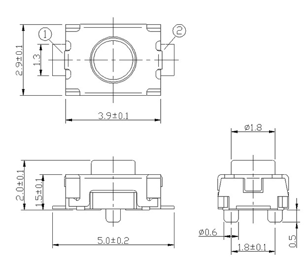 尺寸: 3.9X2.9mm 產品分類: 輕觸開關 - A系列 / MINI型 應用 ※ 便攜式音響 ※ 手機和掌上電腦 ※ 各種數碼設備的操作 特點 ※ 提高PCB組件的安裝密度 ※ 回流可焊 ※ 觸點完全封裝,提高可靠性 ※ 用12mm寬的編帶包裝