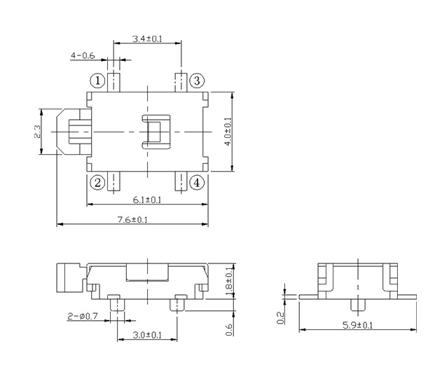 尺寸: 6.1X4.0mm 產品分類: 輕觸開關 - B系列 / 3x6一型二型 應用 ※ 用于操作各種像音響之類的電子設備 ※ 錄像機,通訊設備,相機,家用電器等 特點 ※ 側邊類型可以在PCB上側按 ※ 回流可焊 ※ 用16mm寬的編帶包裝