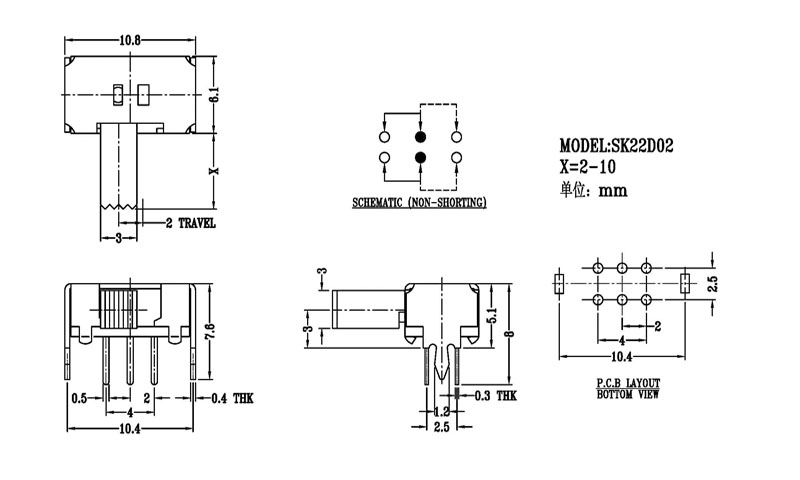 撥動開關主要技術參數: 使用功率/額定值:DC 50V 0.3A~1A 觸點電阻:< 100 mΩ 絕緣電阻:≥ 100 MΩ 耐壓:500V AC for 1 minute 撥動力:180~500gf 使用壽命:10000次 操作溫度:-16℃to+60℃ 儲存溫度:-40℃to+85℃ 符合標準:RoHs&Reach