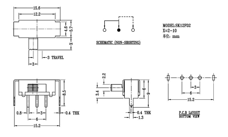 撥動開關主要技術參數: 使用功率/額定值:DC 50V 0.3A~1A 觸點電阻:< 100 mΩ 絕緣電阻:≥ 100 MΩ 耐壓:500V AC for 1 minute 撥動力:180~500gf 使用壽命:10000次 操作溫度:-16℃to+60℃ 儲存溫度:-40℃to+85℃ 符合標準:RoHs&Reach