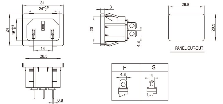 型 號(hào):DB-14-5A: 關(guān)健詞:品字尾插座、品字尾電源插座、品字插座、AC電源插座、器具插座 用 途:小家電品字電源;主機(jī)機(jī)箱插座;電瓶車電源插座;電器插座 尺 寸:31*24 電流電壓:10A 250V