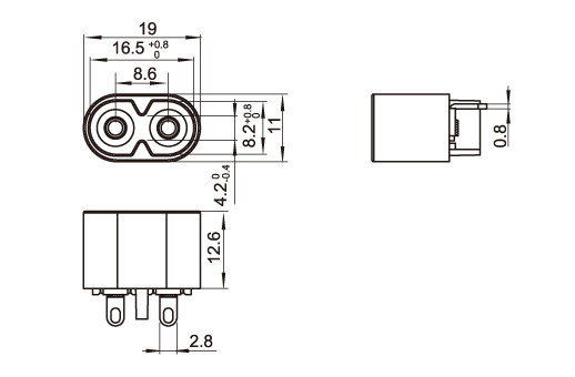 型 號:DB-8-5ES1: 關健詞:八字插座:八字尾插座;適配器電源插座 用 途:電源適配器:筆記本電源;醫療器械電源;充電器; 尺 寸:19*11 電流電壓:2.5A 250V