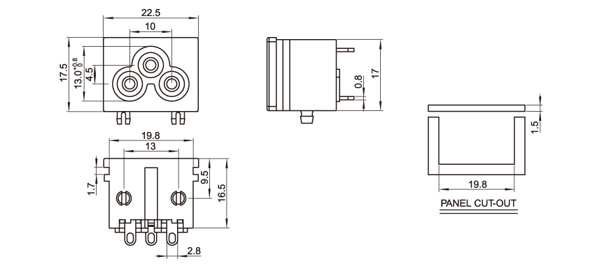 型 號:DB-6-1S1S1: 關健詞:梅花插座:梅花尾插座;適配器電源插座 用 途:電源適配器:筆記本電源;醫(yī)療器械電源;充電器; 尺 寸:22.5*17.5 電流電壓:10A 250V
