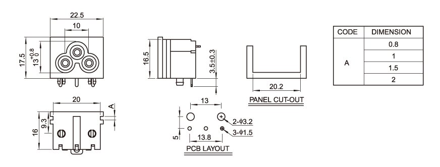 型 號:DB-6-4P5P3 關健詞:梅花插座:梅花尾插座;適配器電源插座 用 途:電源適配器:筆記本電源;醫療器械電源;充電器; 尺 寸:22.5*17.5 電流電壓:10A 250V