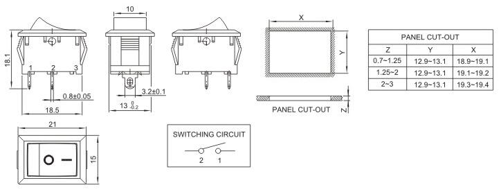 15*21二檔小角 船型開(kāi)關(guān) 蹺板開(kāi)關(guān) IO電源開(kāi)關(guān) 1.額定工作電壓、電流Rating 3A/6A/15A 250V 2.使用溫度范圍Temperature -25+85℃ 3.接觸電阻Contact Resistance <0.03Ω 4.動(dòng)作力Actuating Force 1.3+0.5N 5.絕緣電阻Insulation Resistance >100MΩ 6.壽命(switching Life) 10000次