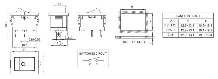15*21二檔小角 船型開關(guān) 蹺板開關(guān) IO電源開關(guān) 1.額定工作電壓、電流Rating 3A/6A/15A 250V 2.使用溫度范圍Temperature -25+85℃ 3.接觸電阻Contact Resistance <0.03Ω 4.動(dòng)作力Actuating Force 1.3+0.5N 5.絕緣電阻Insulation Resistance >100MΩ 6.壽命(switching Life) 10000次