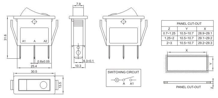 13*30.5 red lights Ship type switch Rocker switch IO power switch 13*30.5 紅色帶燈 船型開關 蹺板開關 IO電源開關 1.額定工作電壓、電流Rating 3A/6A/15A 250V 2.使用溫度范圍Temperature -25+85℃ 3.接觸電阻Contact Resistance <0.03Ω 4.動作力Actuating Force 1.3+0.5N 5.絕緣電阻Insulation Resistance >100MΩ 6.壽命(switching Life) 10000次