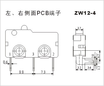 電氣性能參數∶ 1.額定負載∶AC 3A5A 125/250V 2.接觸電阻∶100毫歐以下 3.絕緣電阻∶100兆歐以上 4.耐壓∶AC 1000V 5.力度∶250±20gf 6.壽命∶100000次 7.手焊∶350*10度