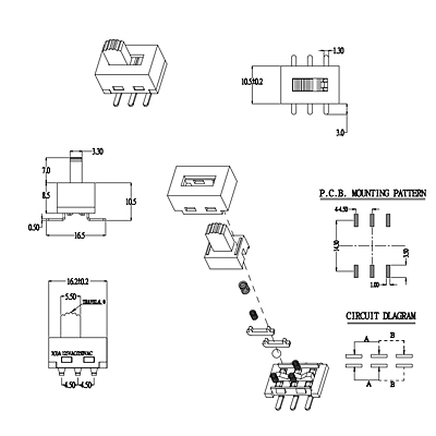 工作溫度范圍Operating temperature range:-30℃to+85℃ 額定電流Rating:6A 250V AC 絕緣電阻Insulation resistance: 100MΩ min.500V DC 接觸電阻Contact resistance: 30m Ω max. 操作力度Operating fore:250±100gf 壽命Life time:10000 cycles(依產(chǎn)品而定)