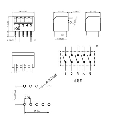 腳間距Pitch 2.54mm,滑動性直插式開關,屬兩態。比起KG系列,它的執行機構的力度只有其一半。執行機構為4/6Nylon,UL94V-0,White;外罩材質為PPS,UL94V-0,Black.同樣是鍍金觸點,溫度范圍-40至85度,適于工業級