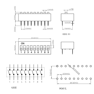 腳距為2.54mm,采用頂撥直插式(DIP)、平型,屬于兩態(tài)。執(zhí)行機(jī)構(gòu)的力度在各系列中最大至800gF,外殼、執(zhí)行機(jī)構(gòu)均采用PBT,UL94V-0材質(zhì)。觸點(diǎn)及端點(diǎn)均鍍金,可靠性強(qiáng)。工作溫度在-40至85度,適于工業(yè)級(jí)。