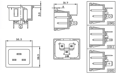 標準:IEC 60320 C20 額定功率:2.5A 250V AC 絕緣電阻:100MΩ 500V DC/1分鐘 絕緣強度:2000V AC/1分鐘 外殼材料:熱塑性塑料 94V-2~V-0