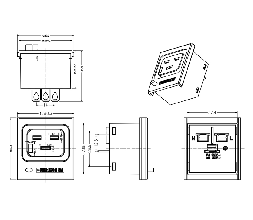 型 號:L-BD-3(C19)滑入式 用 途:桌面C19模塊、PDU機柜C19模塊、升降C19模塊 尺 寸:46*42 功能:13A 250V