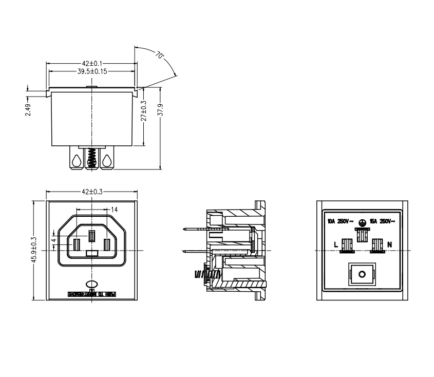 型 號:L-BD-7(C13)滑入式 用 途:桌面C13模塊、PDU機(jī)柜C13模塊 尺 寸:45.9*42 功能:10A 250V
