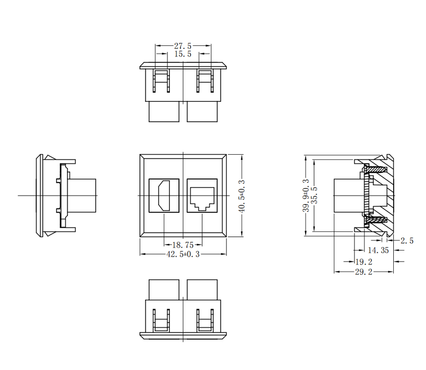 型 號:L-CAT-1(小款 模塊) 用 途:HDM+網(wǎng)口模塊、桌面HDM+網(wǎng)口插座模塊 尺 寸:42.5*40.5